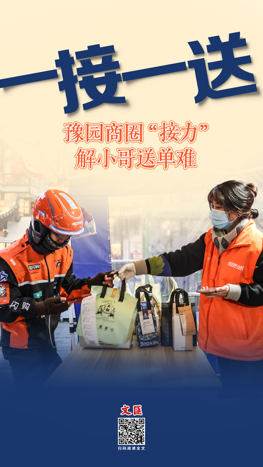 黄浦区豫园街道党工委推动全国首个商圈景区类“接力送”模式在此落地——骑手将餐品送至中转站即可离开,由站内专职步行配送员接力完成“最后一公里”,如此一来,圈内配送时效压缩至10分钟左右,90%订单按时送达。